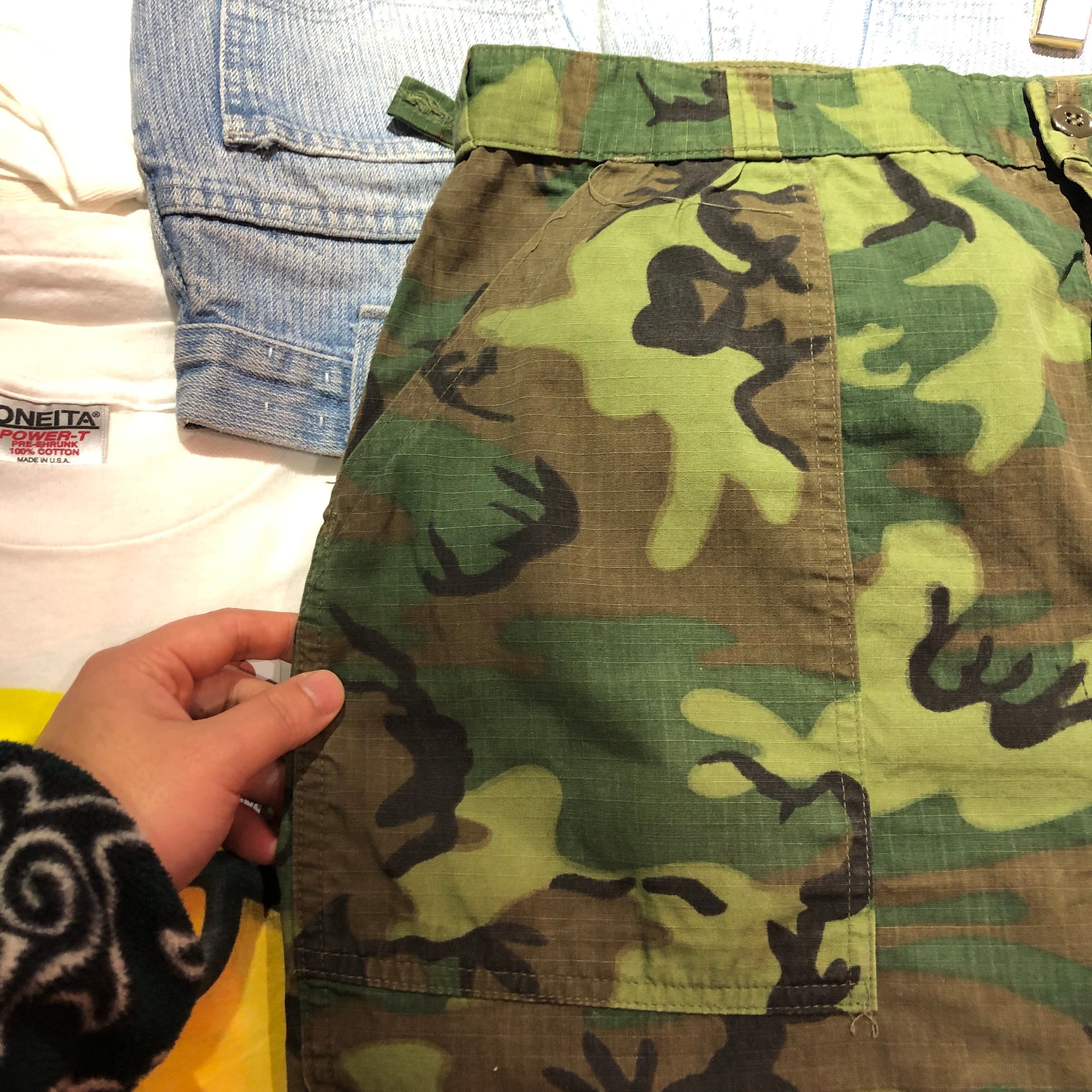 ベトナム戦争の際にジャングルファティーグに採用されたERDL迷彩(グリーンリーフ)柄のベイカーパンツ。