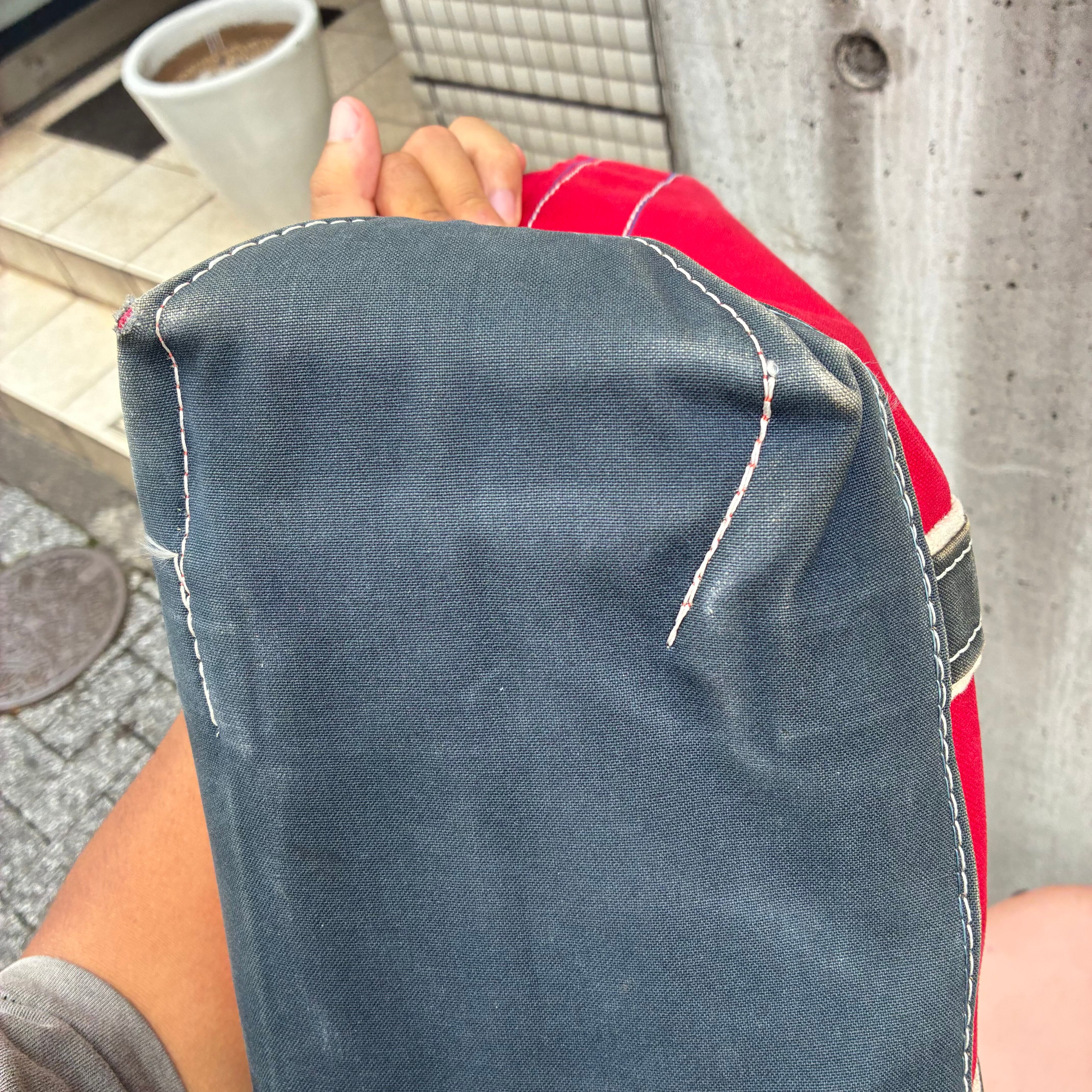ネイビーがブラックの色味に変色しており