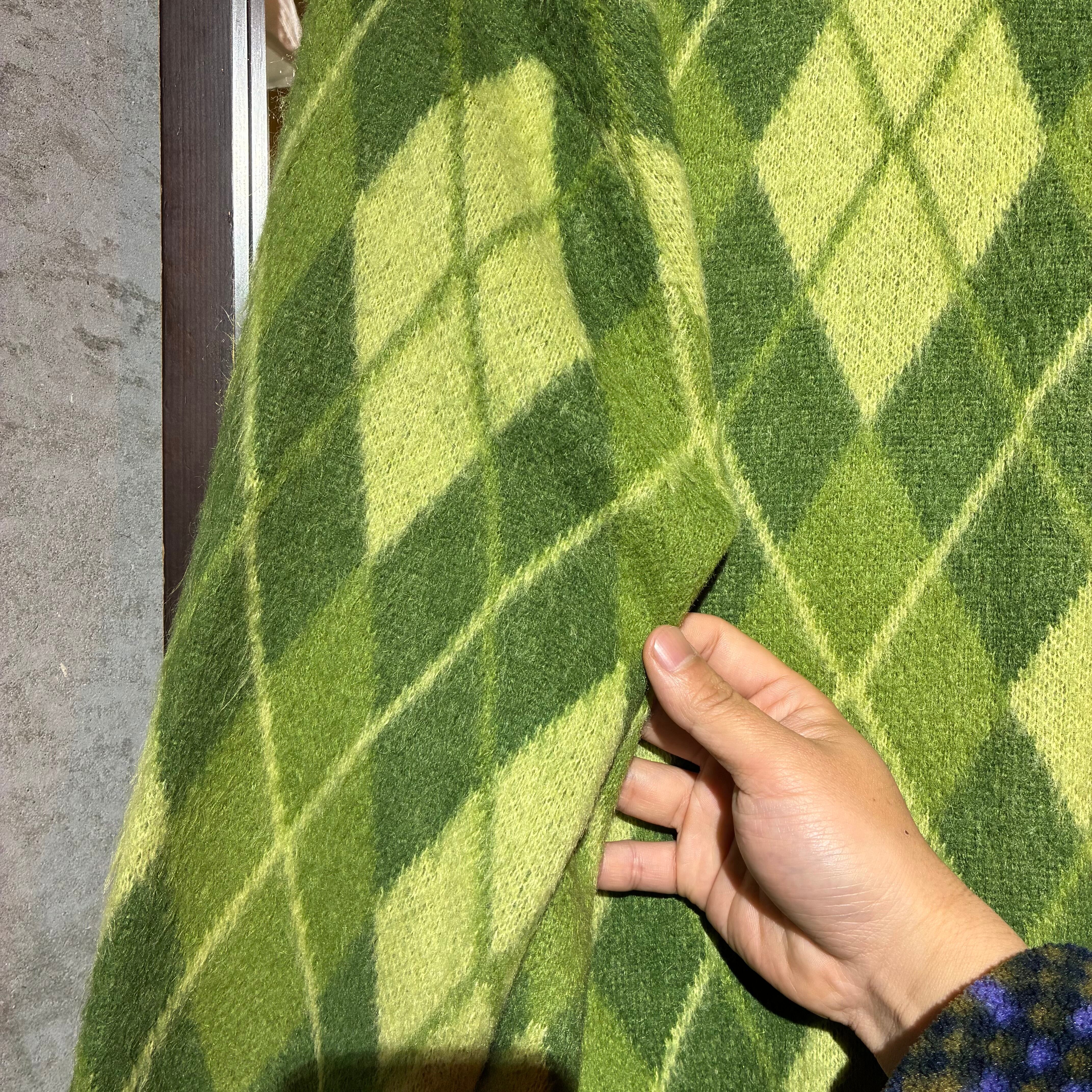 グリーンのアーガイルパターンが優しく主張があり